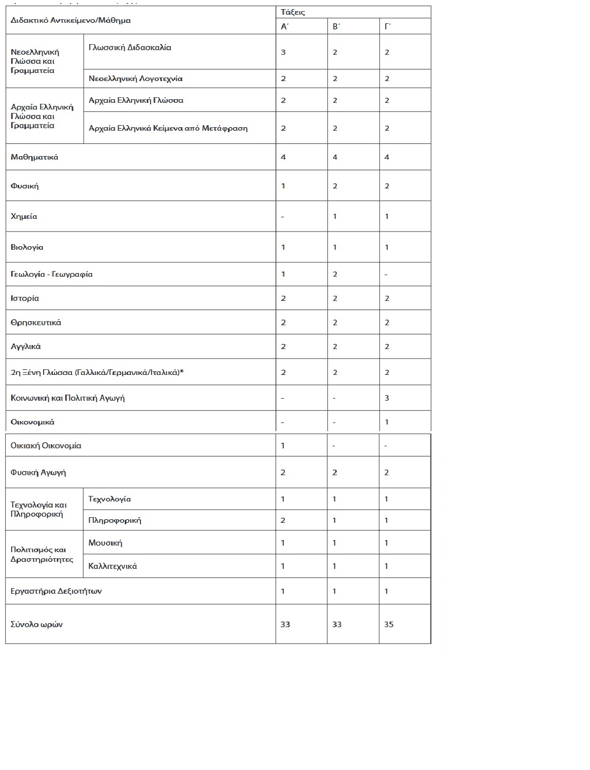 Οι ώρες διδασκαλίας των μαθημάτων στο Γυμνάσιο έχουν ως εξής: Κοινοποιήστε: Κάνε κλικ για να μοιραστείς στο X(Ανοίγει σε νέο παράθυρο) Χ Πατήστε για κοινοποίηση στο Facebook(Ανοίγει σε νέο παράθυρο) Facebook Μου αρέσει! Φόρτωση...