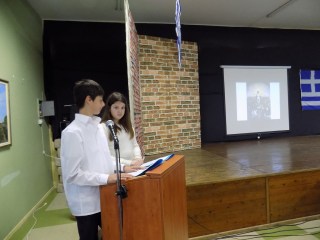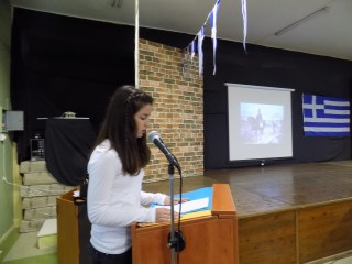 Η σχολική καθιερωμένη γιορτή έχει τελειώσει. Τα καθάρια πρόσωπα των μαθητών και μαθητριών που συμμετείχαν και παρακολούθησαν την εορτή είναι ακόμα μπροστά μας. Οι εικόνες, οι πίνακες της επανάστασης, τα κείμενα, οι ήχοι, έχουν μοναδικά φωλιάσει στο νου μας. Μια γιορτή όχι απλά από εκείνες τις παλιές, αλλά με λόγο και άποψη. Ένα πλήρες χρονικό της εποχής του ξεσηκωμού, με παρόντα όλα τα πρόσωπα με αναφορά σε όλα τα γεγονότα. Άψογα προετοιμασμένη, σκηνοθετημένη, παρουσιασμένη από δύο καθηγήτριες τις: κ. Νεκταρία Πετρίτου, φιλόλογο και την κ. Αικατερίνη Τουμπέκη , γαλλικής φιλολογίας.