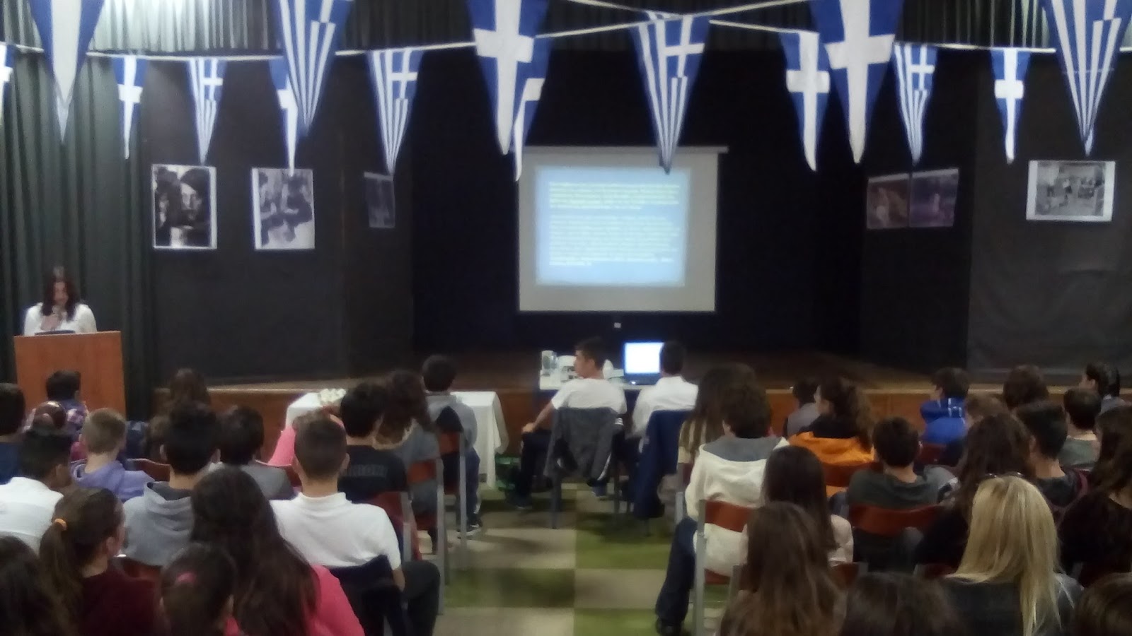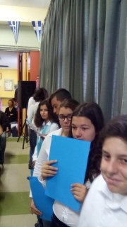 Ήταν όλοι εκεί δίνοντας ένα δυναμικό παρόν στη σχολική εορτή για την επέτειο της 28ης Οκτωβρίου. Όλοι οι μαθητές του σχολείου και αρκετοί από τους γονείς τους παρακολούθησαν με προσοχή την εορτή που προετοίμασαν και παρουσίασαν οι μαθητές της Γ΄ Γυμνασίου με την καθηγήτρια ιστορίας κ. Νεκταρία Πετρίτου.
