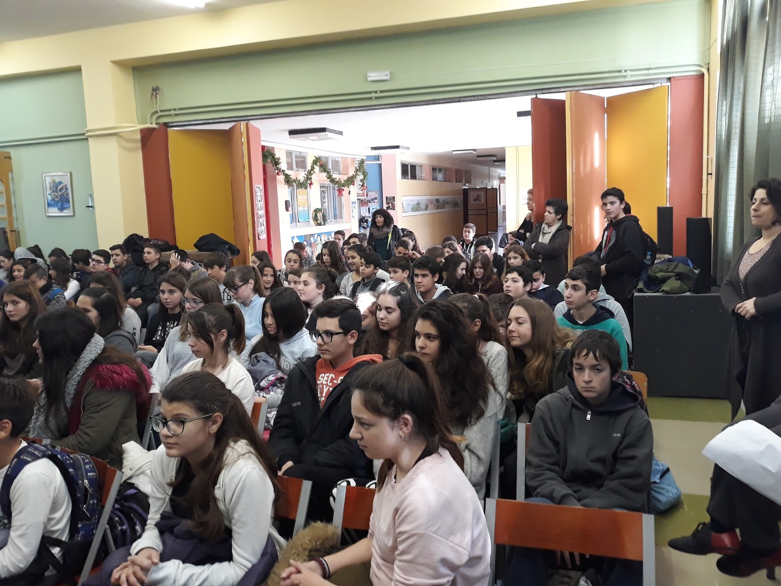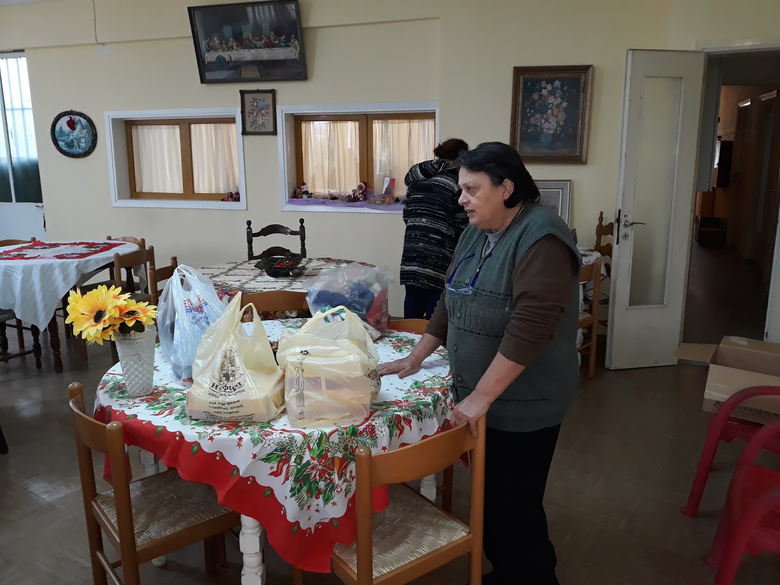 Μια μεγάλη αντιπροσωπεία μαθητών και μαθητριών παρά τη βροχή και στο τσουχτερό κρύο ξεκίνησαν από το σχολείο τους και κατέληξαν στο Λεούσειο Ίδρυμα για να προσφέρουν τα δώρα τους για το συσσίτιο απόρων που ετοιμάζεται καθημερινά από τους εθελοντές του Ιδρύματος.
