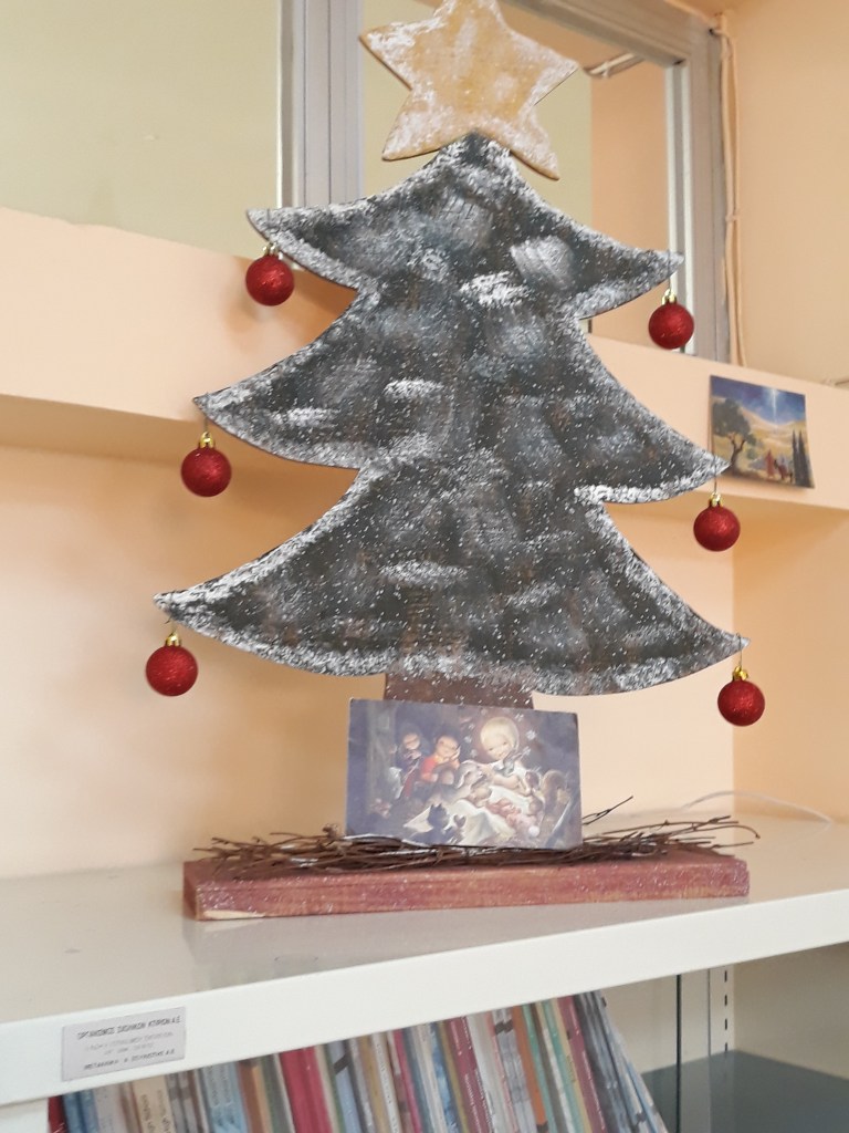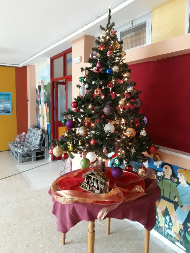 Στην είσοδο λοιπόν στολίσαμε το δέντρο μας για να υποδεχθεί τους μαθητές όταν θα επέστρεφαν πριν τις γιορτές. Τα σχέδια άλλαξαν.