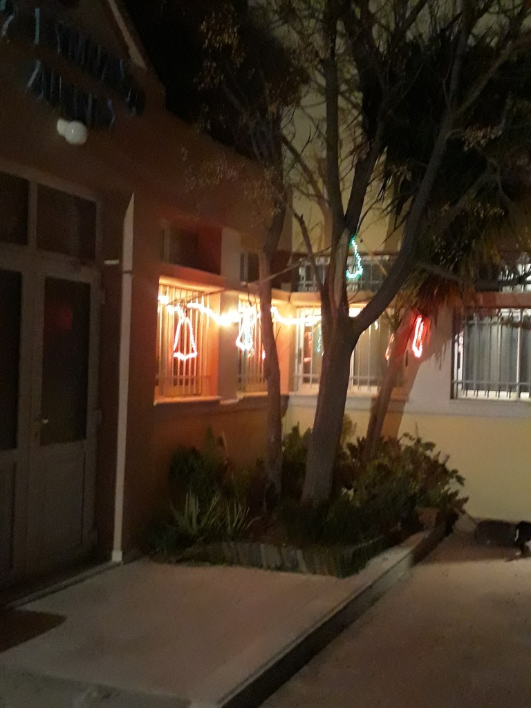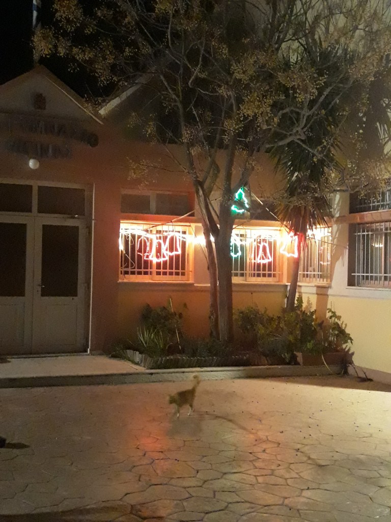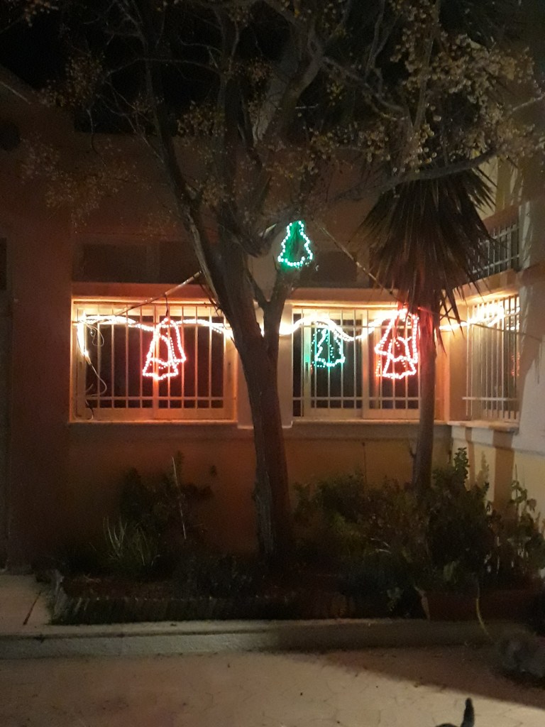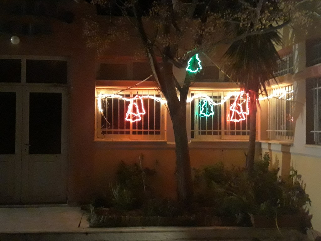 Μπορεί το σχολείο να παραμένει κλειστό αλλά τα Χριστούγεννα είναι γεγονός. Όμορφα φωτεινά στολίδια κυριαρχούν τα βράδια στο μικρό κήπο έξω από τα γραφεία του σχολείου, στέλνοντας μια όμορφη γιορτινή και ζεστή εικόνα στους λιγοστούς περαστικούς.