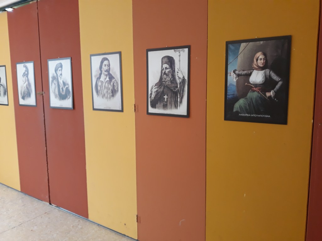 Η έκθεση αυτή μας γυρίζει πίσω στις εποχές εκείνες που τα πρόσωπα των ηρώων κοσμούσαν τους τοίχους των αιθουσών διδασκαλίας, των διαδρόμων και των γραφείων σε κάθε ελληνικό σχολείο.
