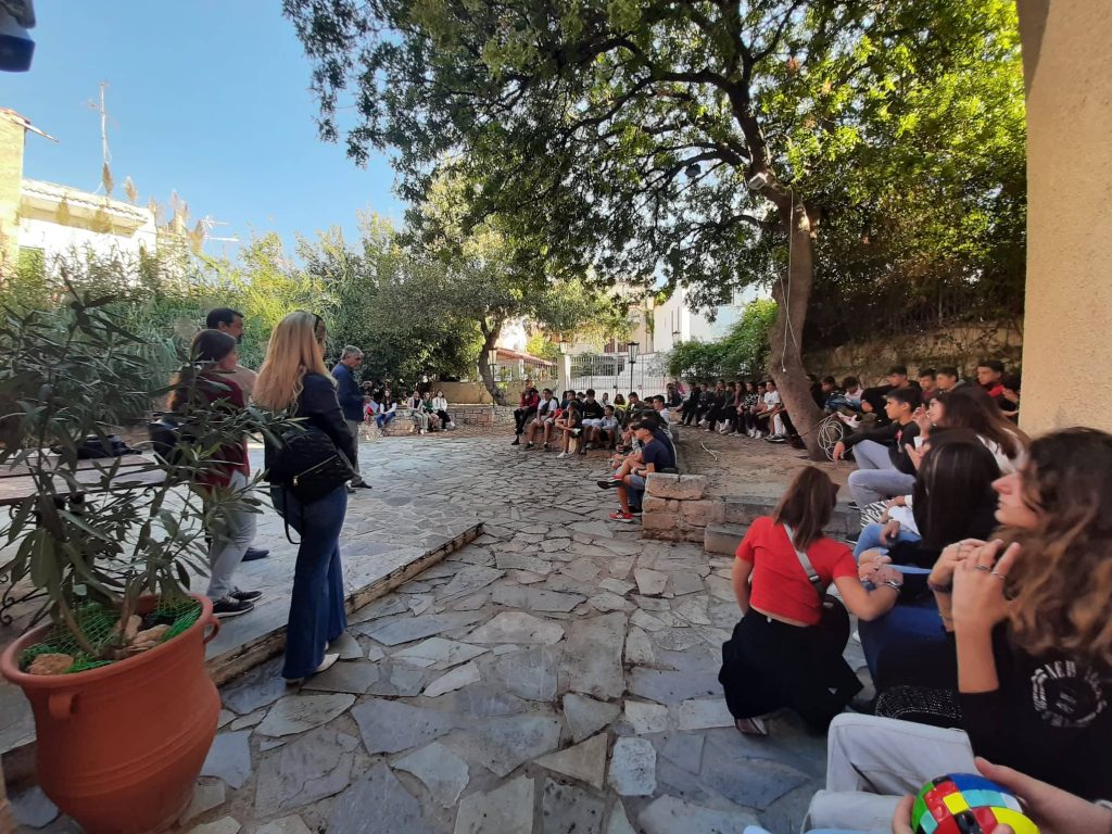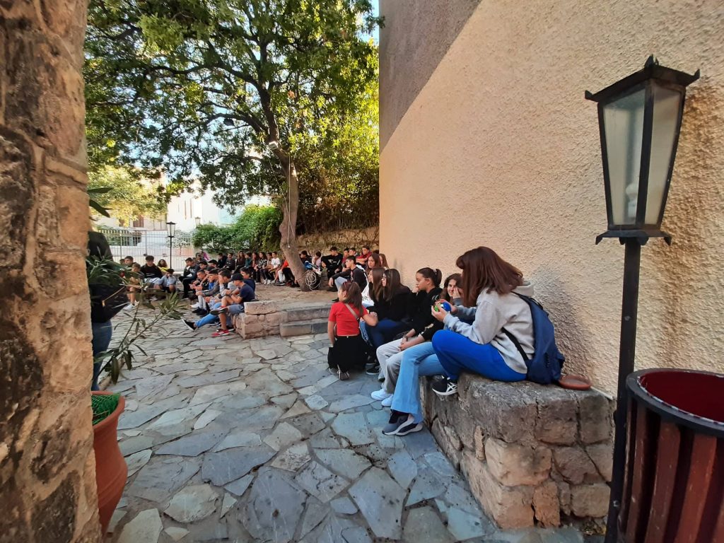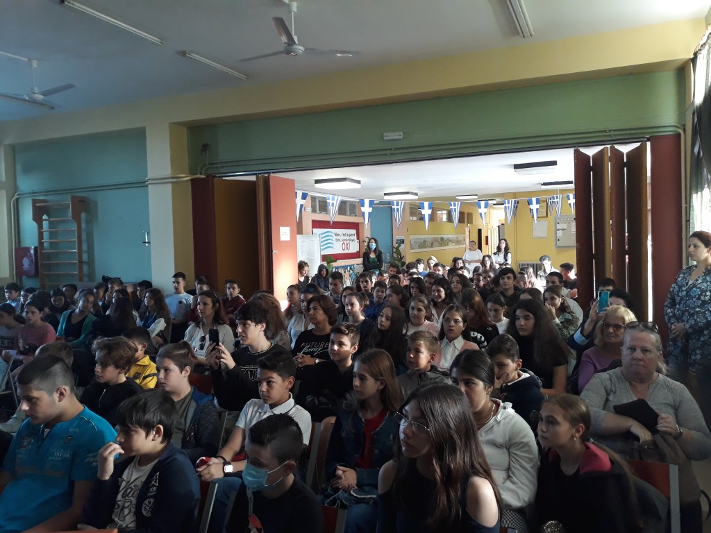 Η κατάμεστη αίθουσα εκδηλώσεων του 2ου Γυμνασίου και ο χώρος υποδοχής από μαθητές, μαθήτριες, εκπαιδευτικούς και γονείς που παρακολούθησαν ένα υποδειγματικό αφιέρωμα στη συμμετοχή της γυναίκας στον πόλεμο του ’40.