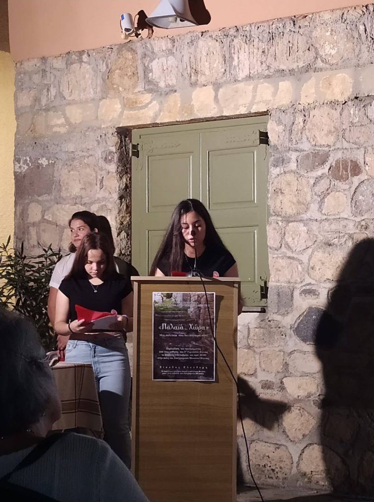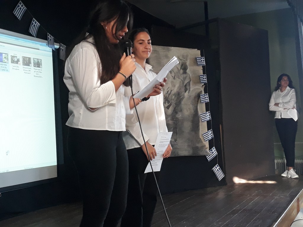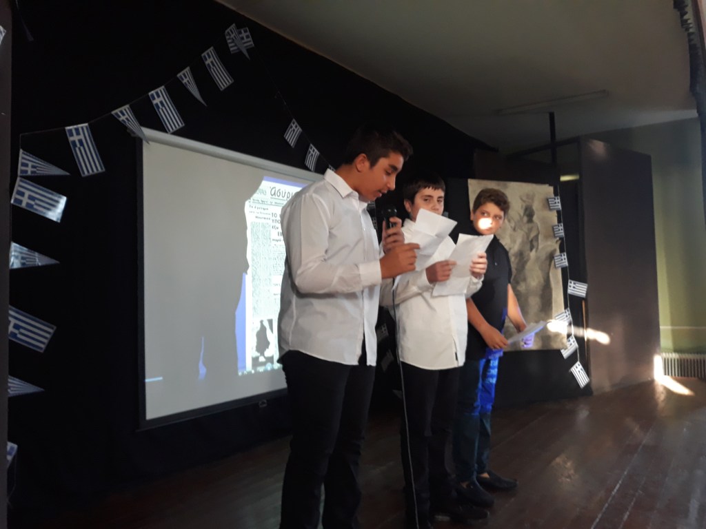 Μια σειρά από μαρτυρίες σε ντοκυμαντέρ, αφηγήσεις και εικόνες από τα πέτρινα χρόνια του πολέμου και της κατοχής πλαισίωσαν τα κείμενα, το χρονικό και τα ποιήματα που απήγγειλαν οι μαθητές.